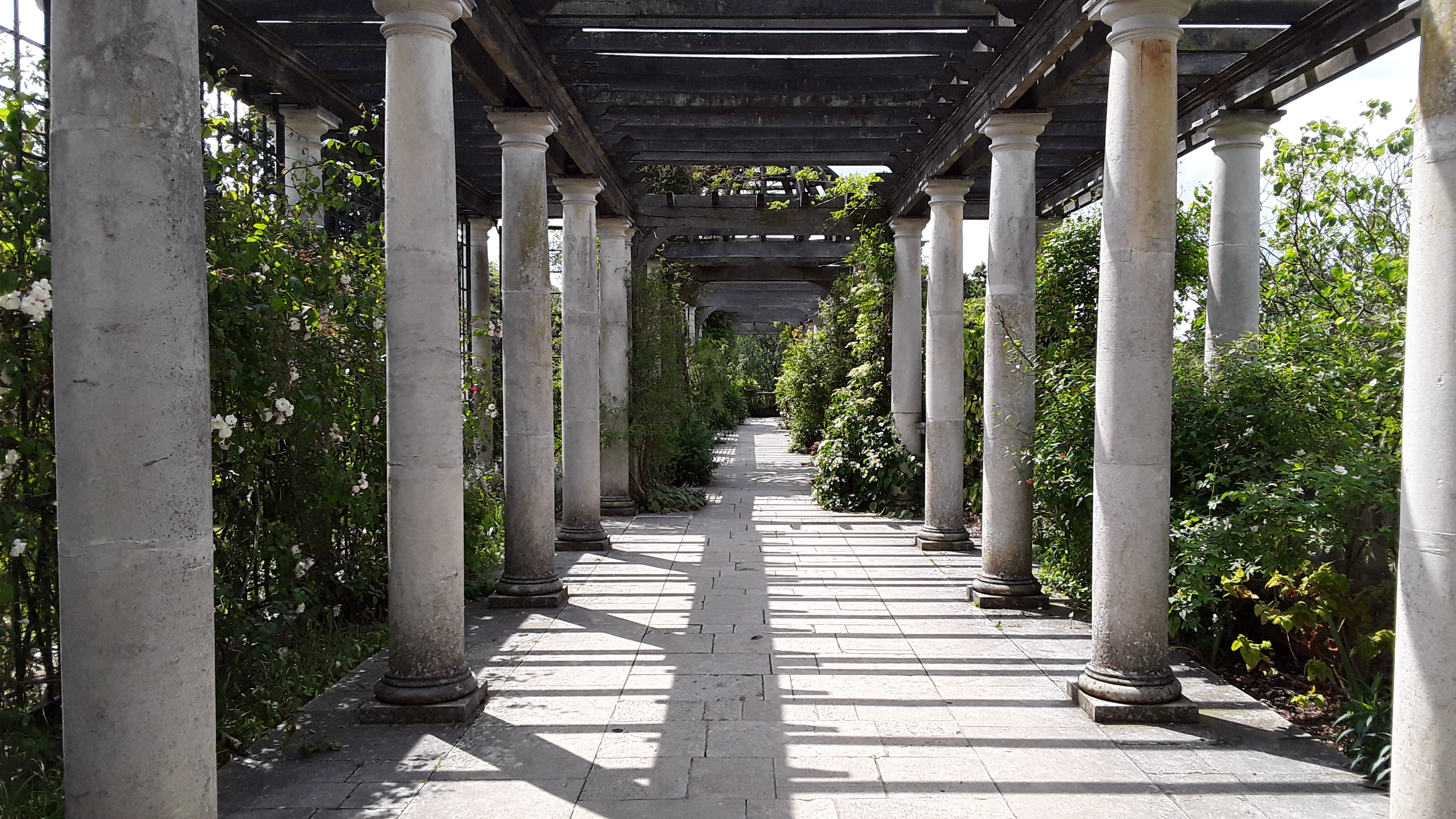 But after all of the city sights, my introvert’s heart sighed with pleasure to spend a few hours one afternoon in a quiet corner of the park. One of the many parks, I should say, and thousands of acres of greenery. We followed twisting unmarked paths, tracing a route on our cell phone (and hoping we wouldn’t lose service), to find the Hill Garden Park and Pergola. How can I describe it? Imagine Mr. Darcy imploring Elizabeth to end his agony on a weathered stone gazebo heaped with climbing roses. Now imagine Cair Paravel. Put the two together and you might have an idea of this place, tucked behind a grand manor in a thicket of dense woods. That spot of startling beauty in a city teeming with noise was my favorite bit of London.